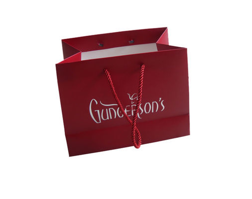 แพ็คเกจของขวัญถุงกระดาษพิมพ์สีแดงแบบกำหนดเองพร้อมเชือกหูหิ้วผ้าฝ้าย |