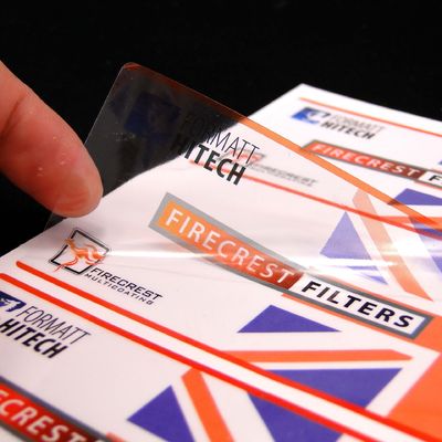 บริษัทของเราผลิต สติกเกอร์ใสพิมพ์ลายแบบกำหนดเอง ป้ายสติกเกอร์กาวในตัวแบบใส ซัพพลายเออร์ป้ายสติกเกอร์พลาสติก