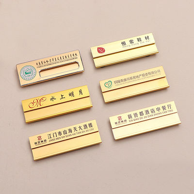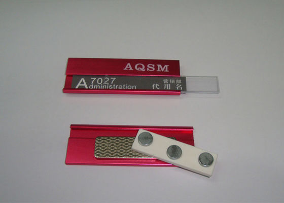 แบดจ์ชื่อเหล็กอัลลูมิเนียมนี้มีพื้นผิวโลหะเรียบและถูกออกแบบเพื่อมืออาชีพ